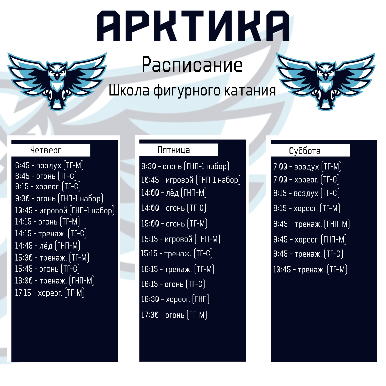 * Расписание может меняться в праздничные дни и дни школьных каникул